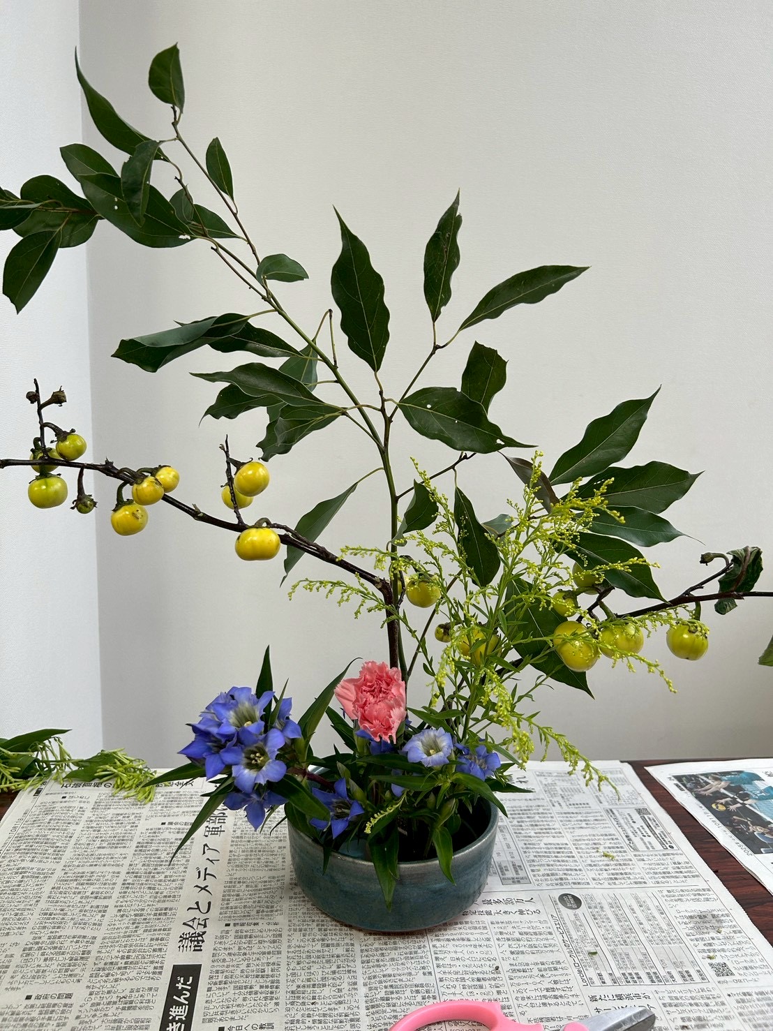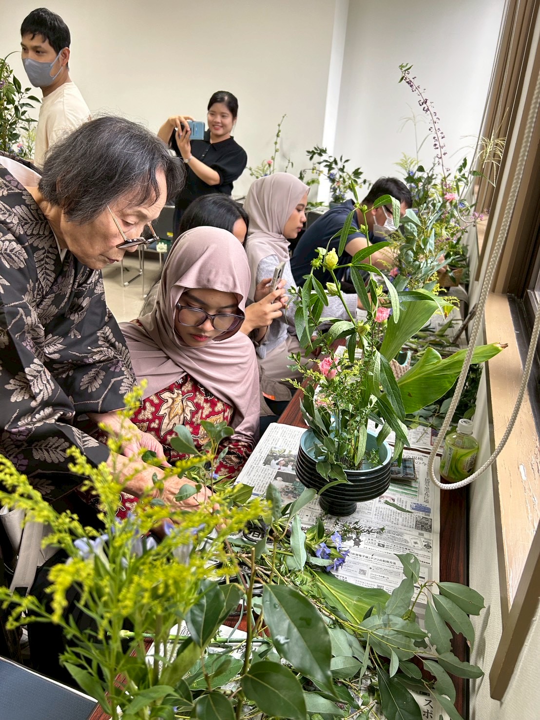 講師加藤美千代さんによる日本文化体験第2段は、生け花。たくさんのお花の中から、気に入った花を選び、花器と剣山に上手に生けることができました。