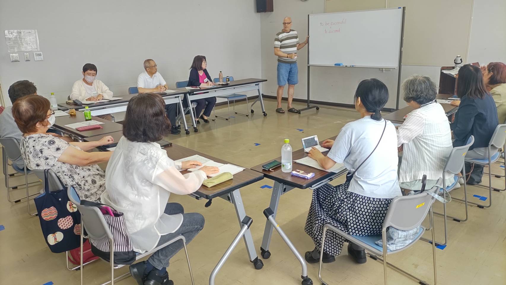 受講生11名。ゲーム形式のテキストで、ジョン先生のジョークを交えながらの、楽しい学習でした。最終日には、ボランティア手作りケーキとコーヒーで、茶話会をおこないました。