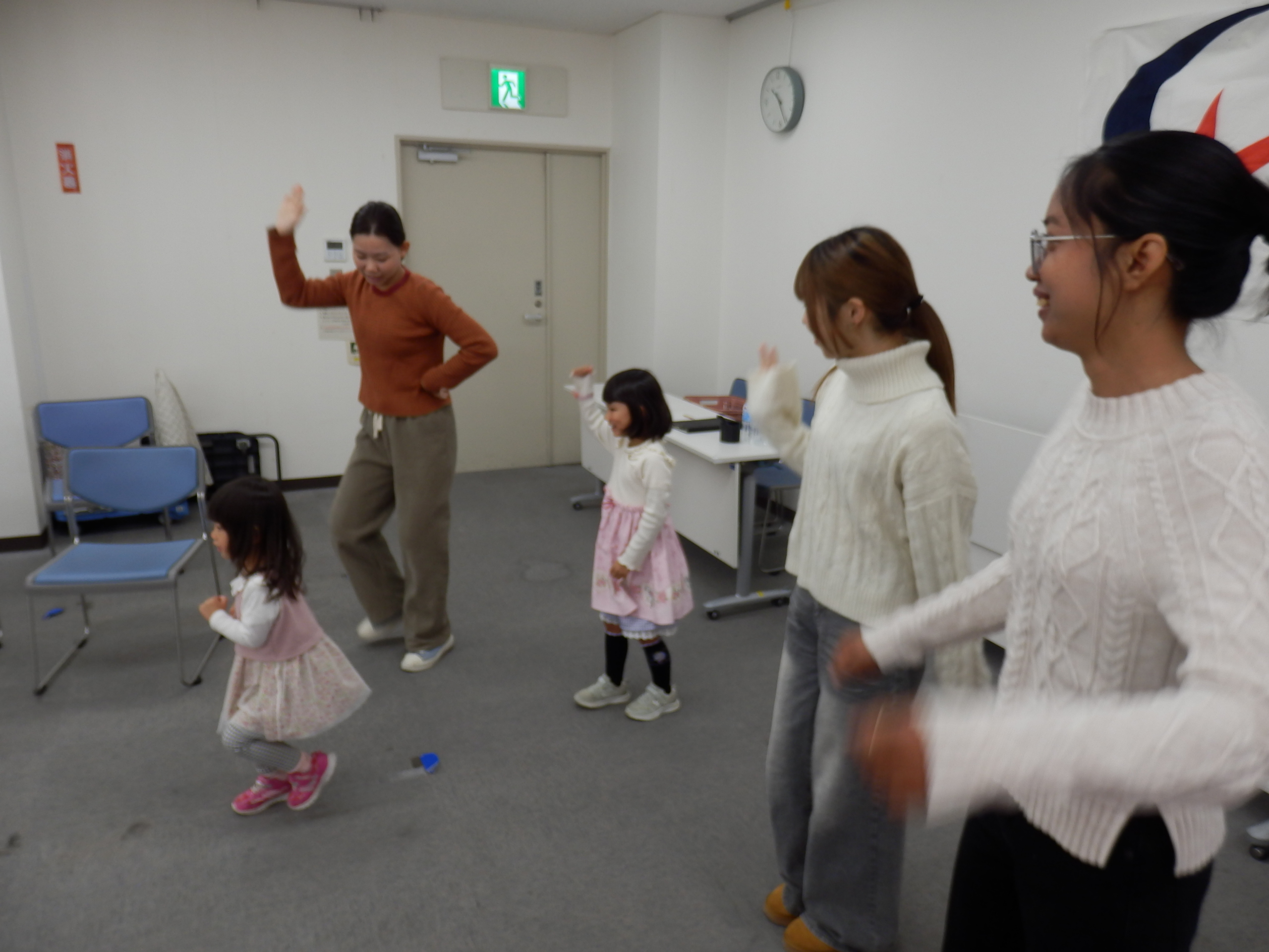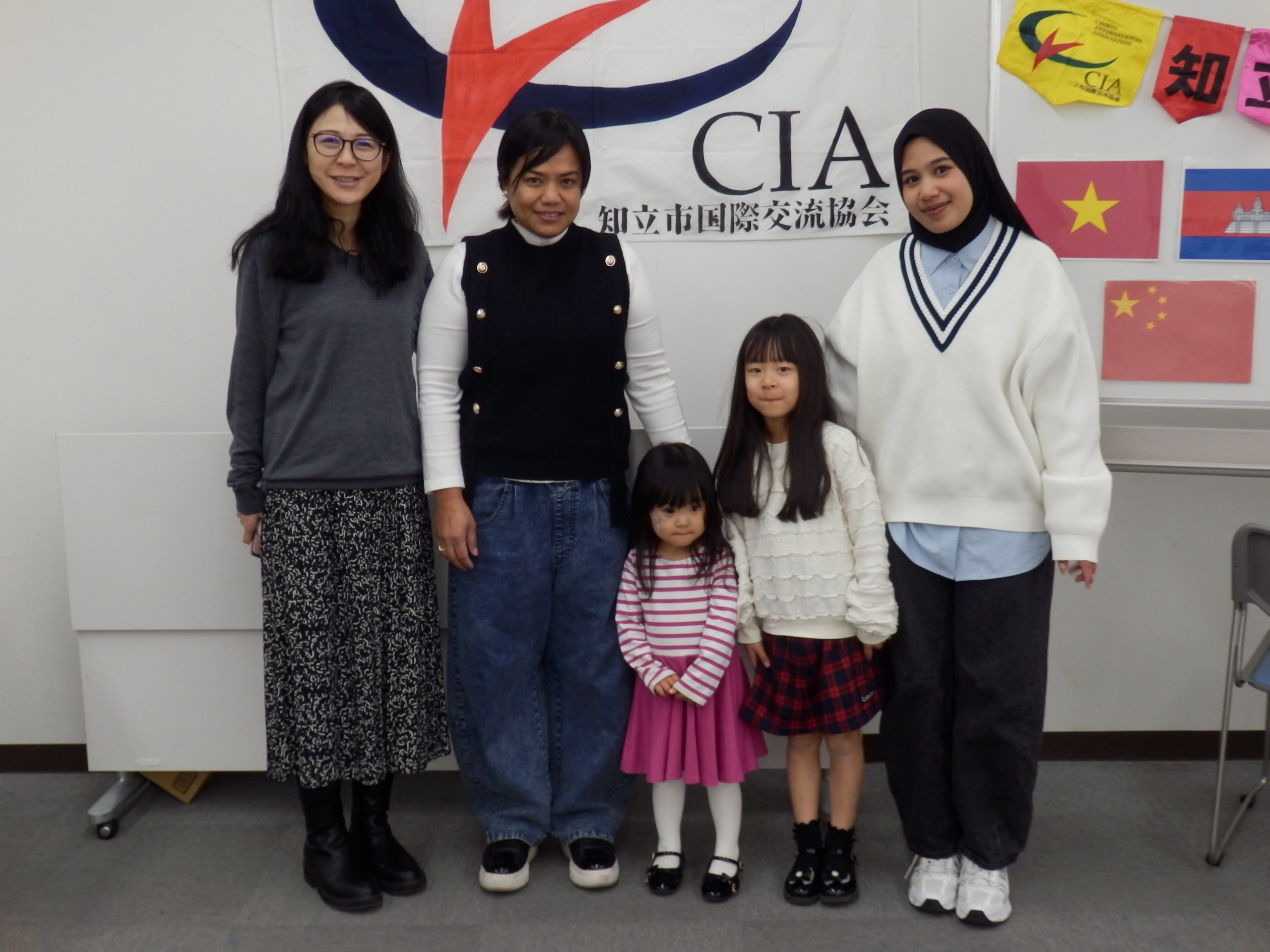 外国人6人、ホストファミリー5家族の参加。10時から公民館で対面式と交流会。 TikTokで流行っているインドネシアの手遊び、子どもたちとミッキーのダンスや、ジングルベルの歌で輪になってみんなでダンスを楽しみました。その後それぞれの家に行き、日本の家庭を体験しました。