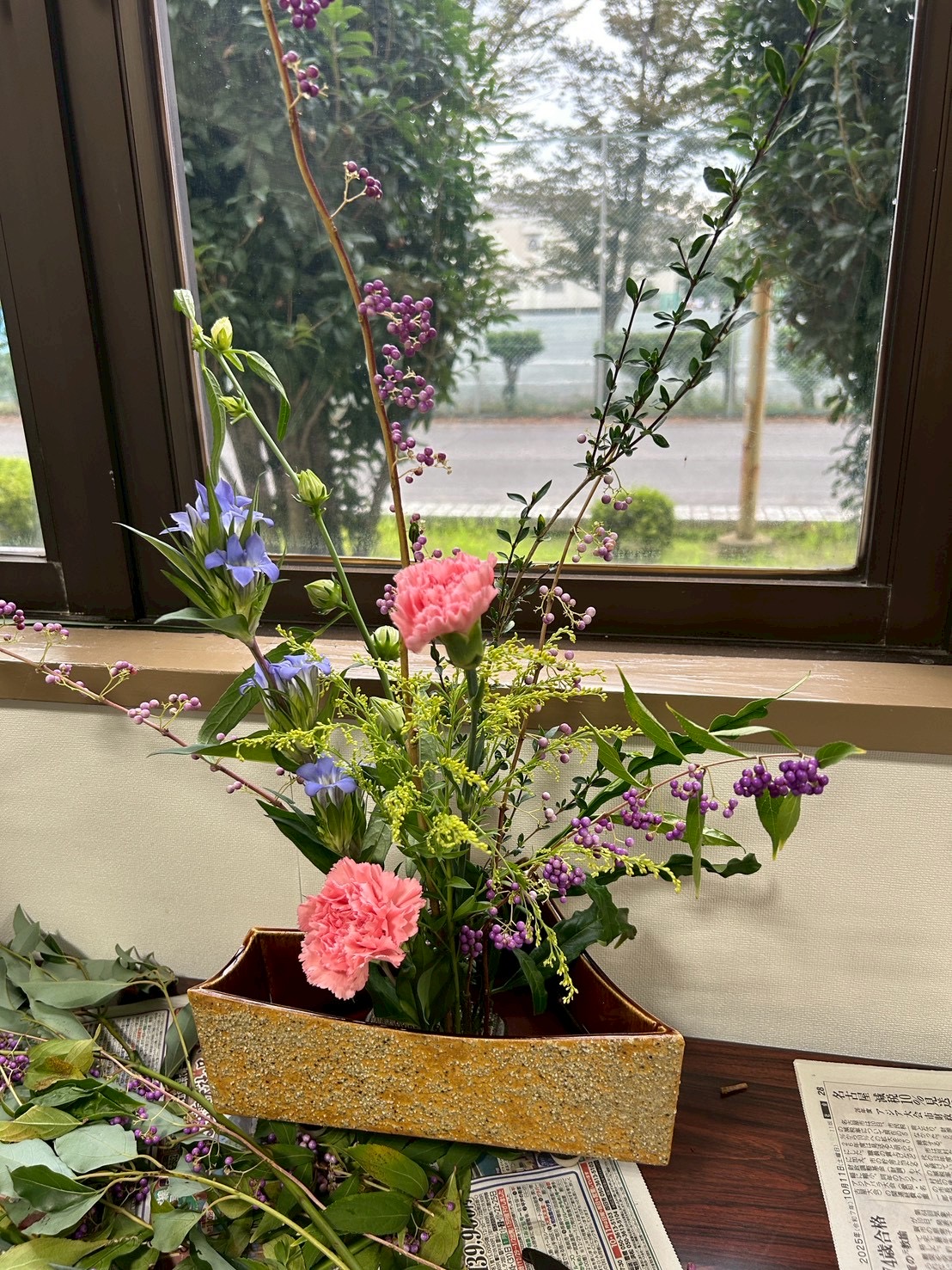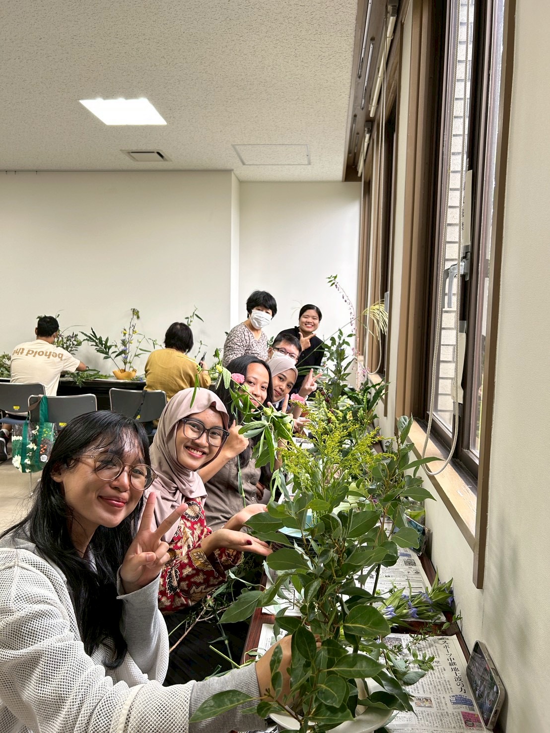 講師加藤美千代さんによる日本文化体験第2段は、生け花。たくさんのお花の中から、気に入った花を選び、花器と剣山に上手に生けることができました。