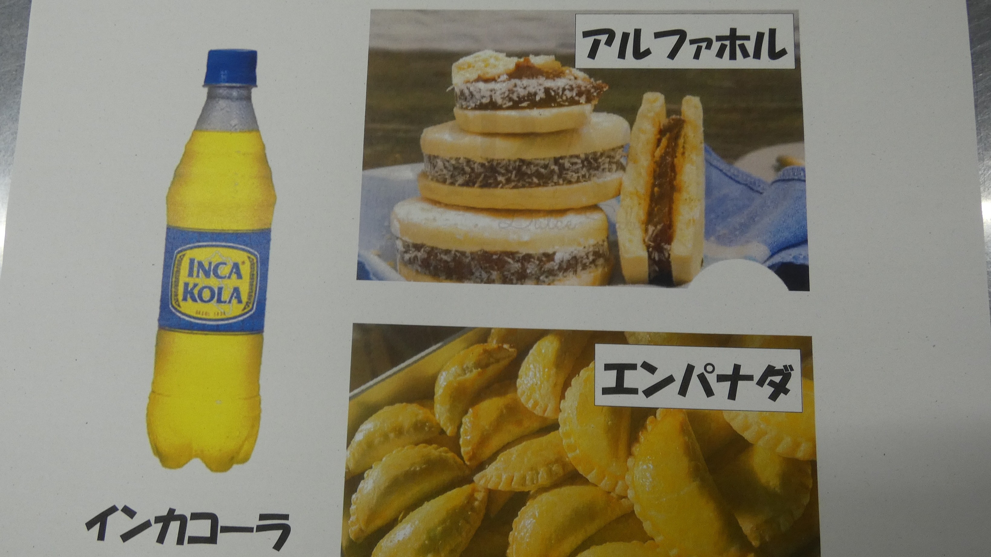 外国人の通訳や相談員として勤務する傍ら、ペルー料理店を経営されていて、そこで作ったお菓子や黄色のきれいなインカコーラを持ってきてくださいました。